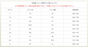 号数 | 身長目安 | パンツ丈 | パンツ幅